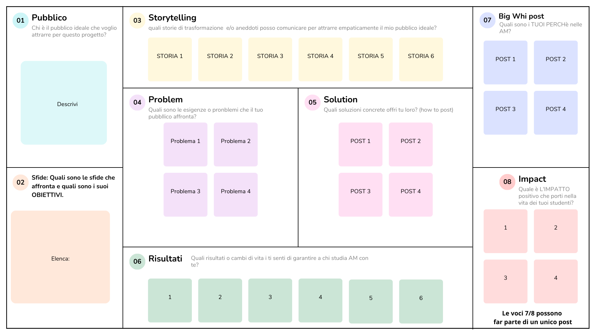 Prendi spunto dalla tabella che ti ho messo qui per crere il tuo primo piano editoriale di contenuti di valore.